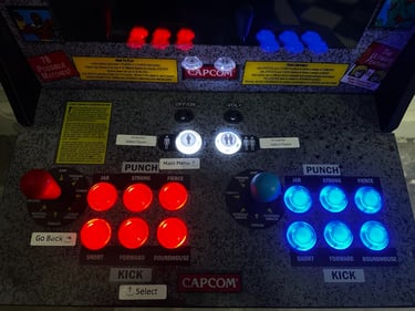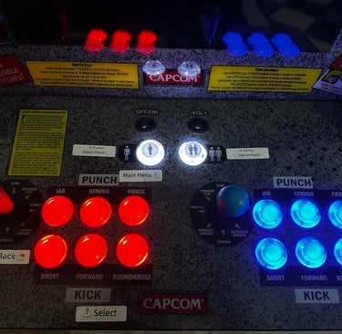 To exit a game, press this middle red button + player 1 button on top to get back to the main menu