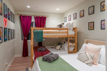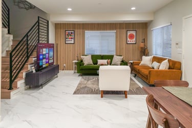 Visit Orange County, California and stay in our newly built 3-bed, 3-bath, 2-story unit. Explore a modern living room, a fully stocked kitchen, cozy bedrooms, and sleek bathrooms. Our hybrid room doubles as a lounge & sleeping area with a pull-out sofa. Indulge in contemporary furnishings and all the amenities needed for short or extended stays.